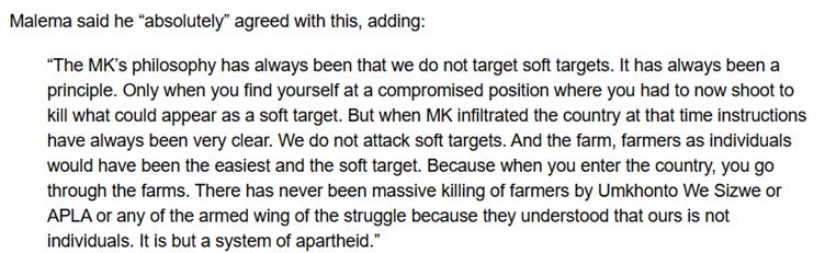 Ultimately we find that owners of the “Kill the Boer, Kill the Farmer” chant; it was uMkhonto weSizwe or MK – the paramilitary wing of the ANC. This is important because it now separates this chant from the APLA “One Settler, One Bullet”.